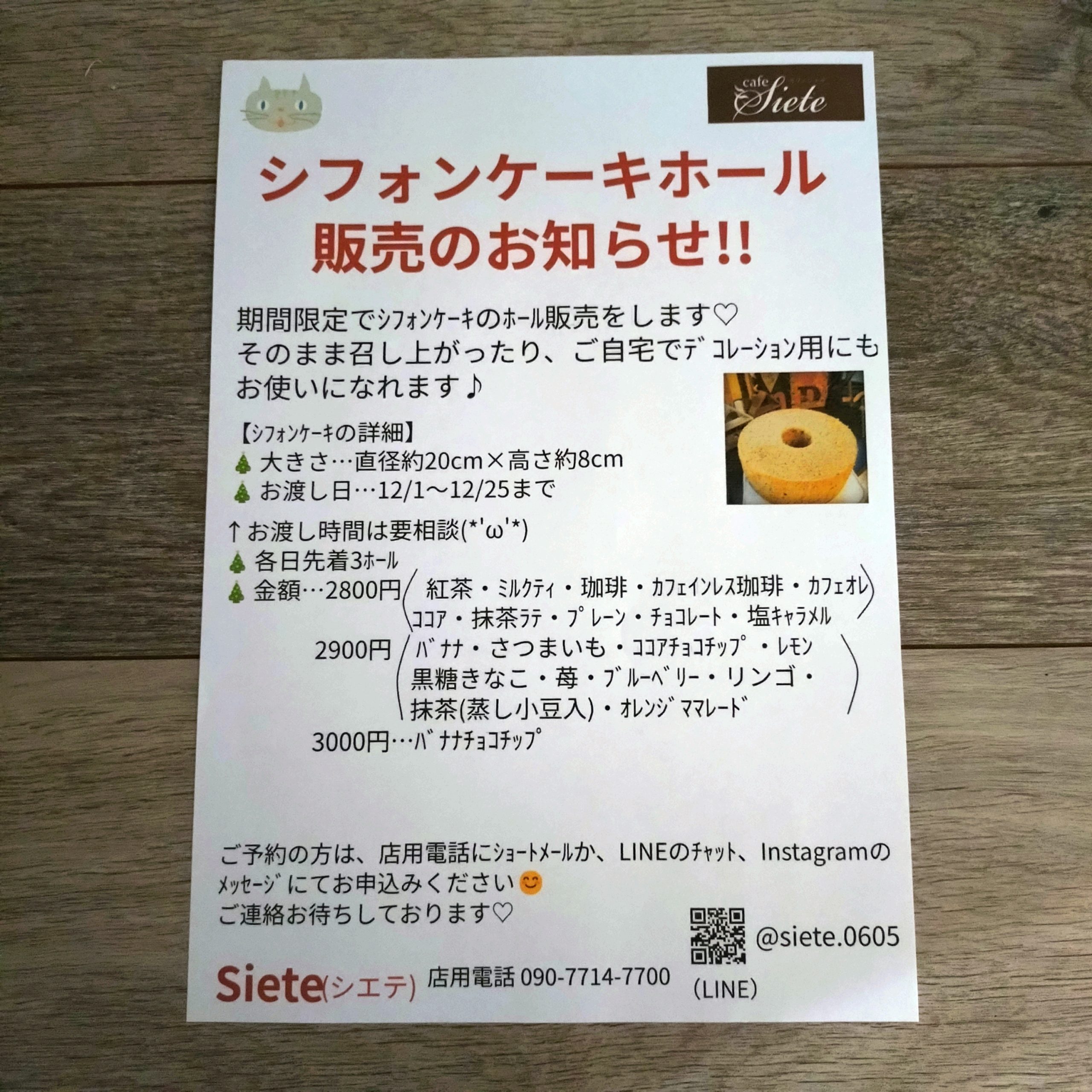 ご希望の方はカフェSiete店用電話(090-7714-7700)にショートメールか、公式LINEにチャットでのご連絡か、インスタグラム(@siete.0605)にMessageをお願いします😌ご迷惑をおかけしますが、宜しくお願い致します。Siete
